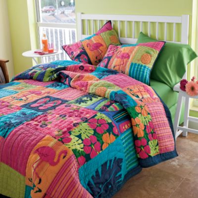 The Company Stores now offers the Island Paradise Quilt on sale as well as other tropical quilts on sale! I love this quilt as it is full of bright colors and some of my favorite items that remind me of the beach. Palm trees, lush foliage, exotic flowers, sweet fruit, rare birds, surfing, pink flamingo, flips flops and more are all found on this fun quilt. You can find more tropical quilts on sale at The Hawaiian Home.